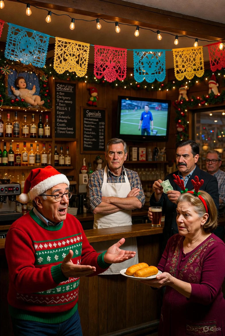 El bar estalla en carcajadas. Afuera llueve. Adentro, el aguinaldo sigue siendo el mismo cuento de nunca acabar.