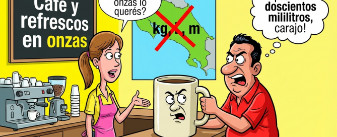 Por Franco Cerutti ¡Bienvenidos al paraíso métrico donde todo es perfecto… hasta que pedís un café o un refresco! Costa Rica adoptó oficialmente el Sistema Internacional de Unidades desde mil novecientos setenta y tres, ley clarísima: metro, kilo, litro y punto. Nada de libras ni onzas. Y sin embargo entrás a cualquier cafetería o